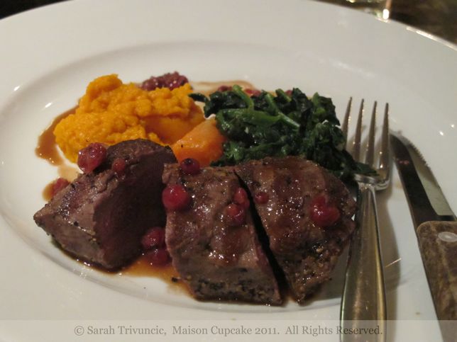 Opting to “cook” first means we get to sit back and enjoy the other two courses undisturbed; springbok with spinach, sweet potato and a cranberry jus features delightfully tender meat similar to venison but less dark and gamey. Like many other game meats, springbok is very low in fat. I’d be low fat too if I spent all my time running away from lions.